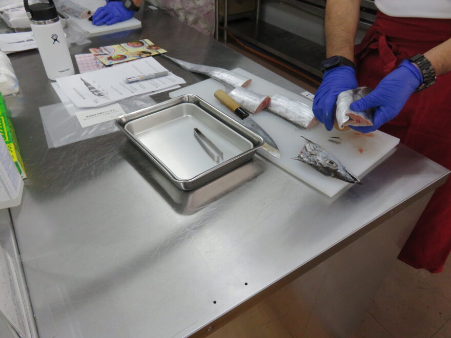 さばき方の実習では、工程を6段階に分け、参加者が1工程ずつ丁寧に挑戦。