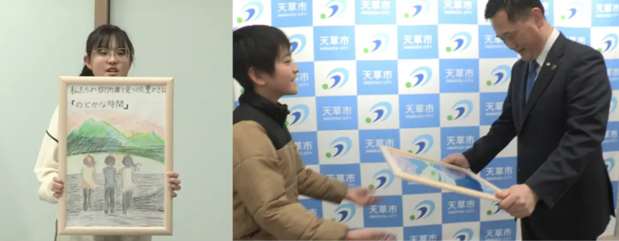 このポスターを描いた理由などを発表し、天草市長に手渡しました。